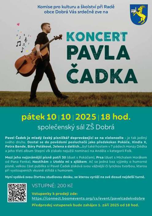 Úvod > O obci > Aktuality > Obec Dobrá zve na koncert Pavla Čadka 10.10.2025