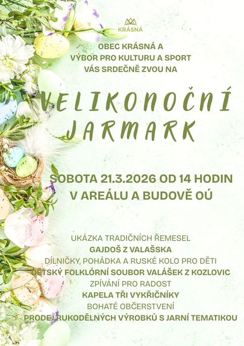 Úvod > O obci > Aktuality > Obec Krásná zve na VELIKONOČNÍ JARMARK 21.3.2026