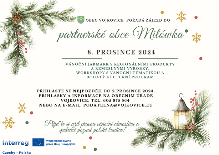 Obec Vojkovice plánuje zájezd do partnerské obce Milówka v Polsku. Zájezd je jak pro občany Vojkovic, tak pro občany sousedních obcí. Autobus hradí obec Vojkovice.