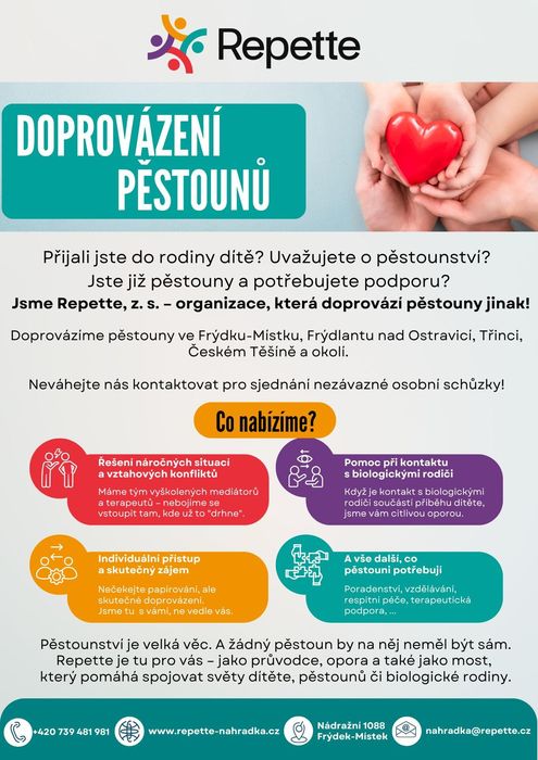 Úvod > O obci > Aktuality > Organizace Repette, z. s., rozšířuje služby o oblast doprovázení pěstounů