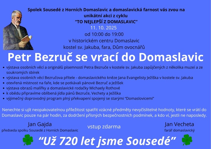 Úvod > O obci > Aktuality > Pozvání na akci "Petr Bezruč se vrací do Domaslavic"