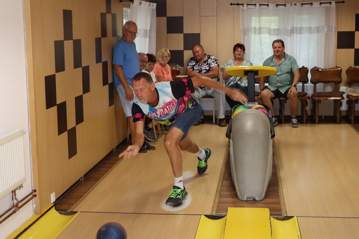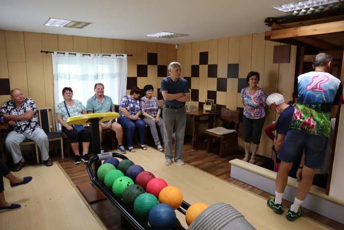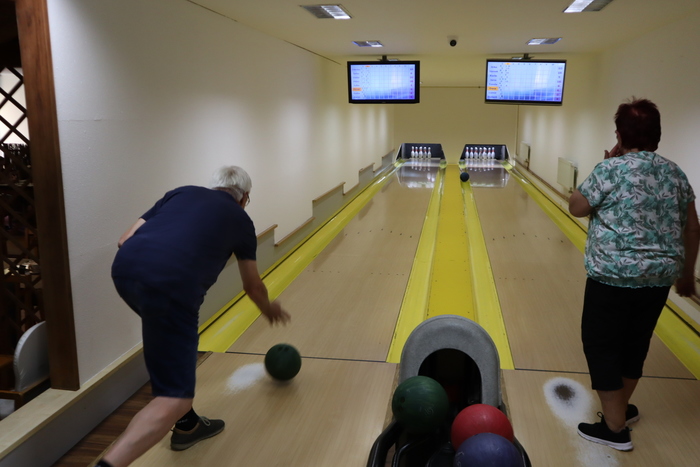 Prázdninové házení bowlingovou koulí mělo svoje další pokračování. Po roce přijelo do Třanovic 25 členů Spolku důchodců, k samotné hře na dvou drahách se nás přihlásilo celkem šestnáct. Prostory v hospůdce u splavu jsou docela stísněné a tak se průběžně střídali hráčky a hráči na startovní čáře, ostatní si mohli mezi tím spolu poklábosit. Dokonce se čas výborně hodil k tomu, aby dámy probraly, jak se letos připraví pečení koláčků na Den Dobratic. Na dvou bowlingových drahách se zápolilo plné dvě hodiny a stihlo se odehrát dvě kompletní hry, kdy si každý účastník hodil podle úspěšnosti i čtyřicetkrát. V soutěži hrálo sedm žen a až v druhém kole rozhodla o těsném vítězství Jana Sobková, druhá se umístila Kateřina Moškořová a třetí Julia Mecová. Mužů hrálo devět a mezi nimi dominoval nejmladší borec Hubert Mec, stříbrnou pozici vybojoval Milan Kozelský a pomyslný bronz získal Karel Moškoř. O samotné výsledky ani nešlo, důležité v seniorském věku je pohyb a ten je u bowlingu především zaměřen na koordinaci těla s rukou a poměrně těžkou koulí. Jestli někoho pak druhý den něco bolelo, nemohl se tomu divit.