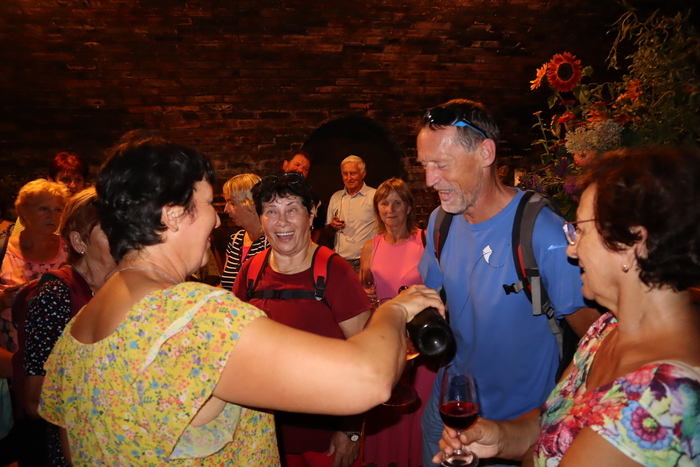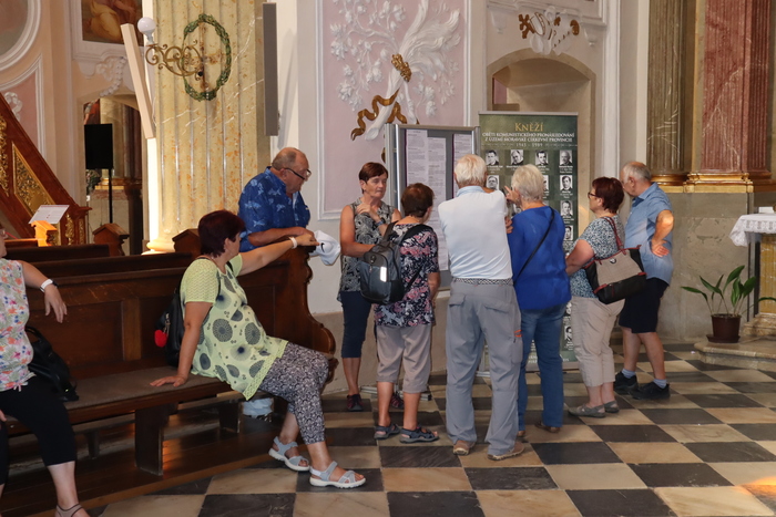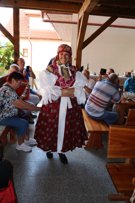 Autobusový zájezd podnikli koncem srpna senioři z Dobratic na Moravské Slovácko. Úlohy průvodce se skvěle zhostil bývalý ředitel dobratické školy Milan Thiel a pro účastníky připravil k prohlídce zajímavá místa. Klimatizovaný autobus byl skvělým místem k přepravě, protože teplotní rekordy stále byly na pořadu dne. První zastávkou jsme měli v Archeoskanzenu Modrá, který představuje ideální podobu slovanského opevněného sídliště – hradiska. Ještě před otevřením areálu využila většina účastníků k návštěvě kavárnu u parkoviště a po posilnění výbornou kávou i typickými koláčky se pak každý vydal podle svých představ na obhlídku terénu. Do skanzenu se vcházelo vstupní branou opevnění, aby pak následovala prohlídka celého areálu. Dřevěné sruby, potom zemnice s výrazně zahloubenou podlahou, nadzemní domy, pekárna, ale také hrnčírna, kovárna a také věž, ze které jsme mohli krásně vidět celou plochu hradiska. Návštěvníkům nemohla ujít pozornosti hned vedle umístěna sladkovodní a botanická expozice Živá voda Modrá. Po vstupu můžete ve dvou podzemních patrech vidět, jak vypadá svět pod vodní hladinou. Tunel pod vodní hladinou skýtá úžasnou podívanou například na vyzy velké, což jsou největší sladkovodní ryby na světě. Rybáři mezi námi jen s údivem koukali na líny, karasy, štiky a další různé šupináče. Radost pohledět bylo i na přírodní koupaliště, kde si mohl každý zájemce aspoň dát nohy do vody v parném létu. Všude kolem nešlo přehlédnout směsici různých rostlin na březích i ve vodě. Po obejití vodních jezírek zbývalo projít po vyvýšené lávce nad výběhem praturů. Další zastávkou se stal nedaleký Velehrad. Ve Velehradě jsme strávili nejvíce času. Než jsme totiž zavítali na prohlídku poutních míst, tak si všichni pochutnali na dobrém obědě v nedaleké restauraci. Potom si samotný Velehrad mohl každý prohlédnout podle svého zájmu a v panujícím vedru nacházeli příjemný chládek i klid především v románsko – gotické bazilice. Zajímavým místem uvnitř byl také panel s fotkami kněží, kteří byli v totalitní době za svou víru různým způsobem připraveni o život. A mezi nimi se objevilo také jméno dobratického Ludvíka Sobka ze Šprochovic. Jeho hrob můžete najít na dobratickém hřbitově. Poslední část zájezdu strávili výletníci v příjemném prostředí nedalekého vinařství u pana Švece. Ochutnávky některých druhů vín, něco k zakousnutí a též nečekané hudební okénko paní domácí na kytaře patřilo k pěknému završení čtvrtečního zájezdu. Ještě nakoupit nějaké to vínečko a pak už hajdy k autobusu a odjezd zpátky ke svým domovům. KM