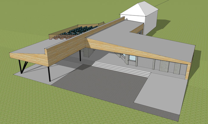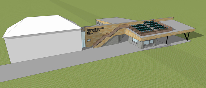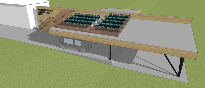 V rámci stavby Zázemí vzniknou dvě části, spojené zastřešeným průchodem. V levé části budou šatny se sociálním zázemím, obecní bufet, garáž pro techniku na údržbu areálu, WC pro veřejnost. V pravé části pak bufet sportovců, místnost pro rozhlas a zázemí pro vystupující na pódiu, které bude zvětšeno. Střecha bude využita pro tribunu se sedadly. Taneční parket bude zachován, zastřešená posezení budou opravena a plocha mezi nimi vyrovnána. Na vlastní stavbu budeme v příštím roce žádat o dotaci u Ministerstva pro místní rozvoj.