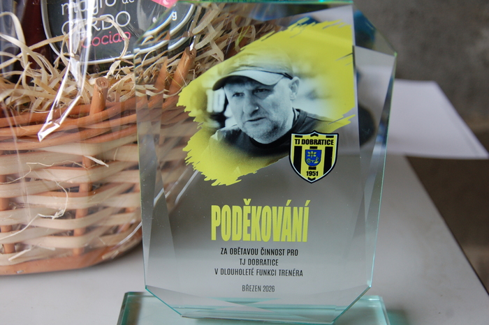 Než bylo utkání zahájeno, přišla chvíle poděkování za dlouholetou trenérskou dráhu v dobratickém klubu pro Mariána Korabíka. Stal se opravdovou legendou a prošel se spoustou hráčů velice úspěšnou cestu trenéra a má velikou zásluhu na velmi úspěšné působení mužského výběru na krajské úrovni. Potlesk od necelých dvou stovek diváků a poděkování od vedení klubu si zcela určitě zasloužil.