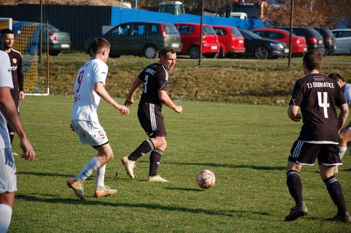 Fotbalové jaro je tady! Při tak pěkném slunečném počasí to bylo doslova lákadlo jít se podívat do dobratického areálu. Ač byla zimní přestávka a moc se nevědělo, jak probíhala příprava fotbalistů na jarní část, vedení dobratického klubu nelenilo. Pro diváky připravili opět něco nového a to konkrétně nové sedačky pod hlavní tribunou. Černé a žluté sedadla se postupně začaly obsazovat zejména domácími diváky, hostující fanoušci se usadili o patro výše, na tribunu. Na první jarní duel mezi domácím celkem a hosty z Lískovce se přišlo podívat více jak dvě stovky diváků. Do druhé části fotbalového ročníku 2024 – 2025 už zkraje nezasáhl nejlepší domácí střelec Matěj Šimeček, který odešel svoje fotbalové štěstí zkusit do zahraničí. Na domácí soupisce se po dlouhé době objevil navrátilec Michal Dobiáš a svoje první minuty si odehrál ke konci také benjamínek týmu Filip Bado.