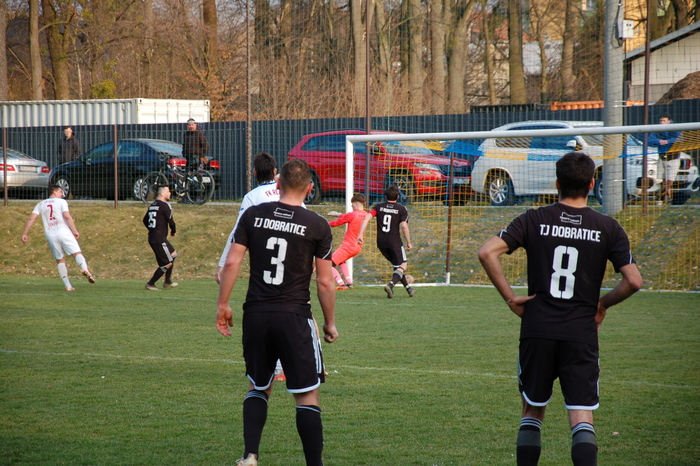Druhý poločas začaly Dobratice výrazně lépe a snažily se dostat do vedení. Přišly i nějaké rohové kopy, jen ta přesnost střelby chyběla k dokonalosti. Hosté se také snažili a na zhruba deset minut převzali iniciativu a zejména Žurovec přiměl domácího brankáře k větší pozornosti. Nejvíce se zapotil po prudké střele Taritsy, kterou s námahou vytlačil na rohový kop. Do dobrého průniku se dostal na opačné straně M.Dobiáš a v posledním okamžiku jeho střelu zblokoval s ním běžící lískovecký obránce. Když se později prudká střela opět Taritsy neujala a skončila v náruči Kluse, chybělo do konce zápasu asi deset minut a vše směřovalo k dělení bodů. Tu chtěli změnit domácí, kdy podnikli nejpohlednější akci na počátku 80.minuty. Začala průnikem Mitrengy z vlastní poloviny po pravém křídle a posunutím míče do plného běhu Dobiášovi. Jeho milimetrový centr na hranici desítky nepříliš dobře trefil Causidis a míč skončil v jiné síti než by si přáli diváci. V 84.minutě však přišel rozhodující moment dnešního utkání. Po rohovém kopu Pařenicy z pravé strany se přetažený míč dostal mezi několik hráčů a ve spleti různých nohou a nevýrazných zásahů fotbalistů byl u míče na správném místě Lýsek a doslova protlačil kulatou merunu mezi pravou tyč a gólmana Lískovce, 1:0! Hosté sice okamžitě běželi k pomeznímu sudímu reklamovat ofsajd, ale těžko posuzovat takové situace bez možnosti VARu, zde vždy záleží na posouzení rozhodčích a diváci si mohou myslet, co chtějí. Však si jen vzpomeňte, kolik centimetrů rozhoduje ve vyšších soutěžích, jestli je gól nebo není. Hrálo se samozřejmě dál a do konce zbývalo ještě dost času ke změně stavu na ukazateli. Když Klus zkrotil další nebezpečnou střelu zhruba ze dvaceti metrů, udělal trenér Korabík dvě taktická střídání. Byly to první minuty pro Filipa Bada v kádru mužů a také v zápase 1.A třídy, druhým hráčem na hřišti pak byl Bařina. Hubený výsledek se podařilo udržet a domácí si připsali šťastné tři body. Co bych chtěl vyzdvihnout na konec, je výkon domácích. Všichni dřeli na doraz a i když se fotbalově moc nedařilo, bojovností měli navrch než protivník. A mimořádně smekám před nejstarším mužem v dresu Dobratic, Patrikem Lýskem. Dohrával s bolestivým zraněním a odměnou mu byla i jediná trefa v prvním domácím utkání jara. KaMoš